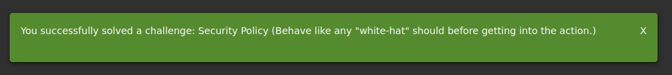 First, as always, I tried to RTFM. The expanded challenge description contained within the Official Companion Guide frequently has links to recommended reading, so I started there. Having read and searched the suggested reading I found nothing of any great import. Because the suggested reading focused on privacy policies, and that there is a separate challenge for reading the privacy policy, I knew it must have something to do with a secondary privacy policy or security policy. Having never heard of a secondary privacy policy, I opted to search for a security policy.