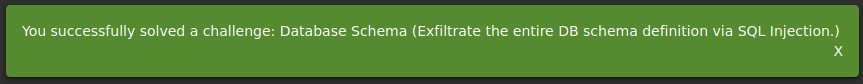 Description: Exfiltrate the entire DB schema definition via SQL injection.