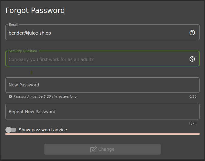 Now just submit that string in the Forgot Password form and reset Bender’s password!